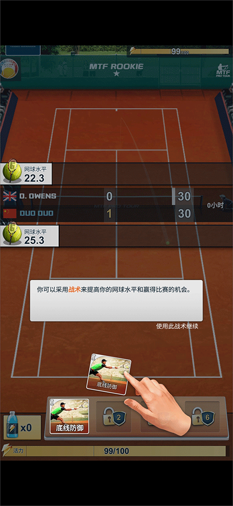 5、在比赛中你可以任意使用战术来提高你的网球水平和赢得比赛的机会