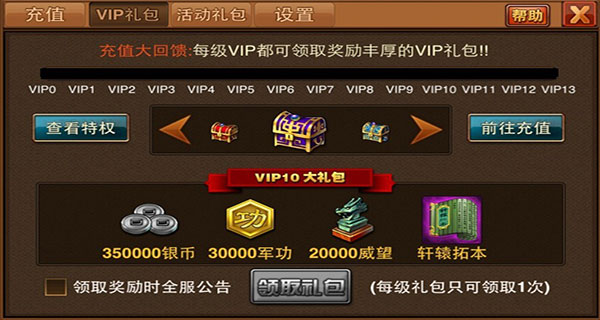 日常活动满足您所有的升级需求,武将升级,银币征收,紫色战马,红色武器,您在三国的每一次成长,都有官方的全力支持战斗PK激烈,攻击敌国,抢夺良田,豪战银矿,团战,国战,为您演绎最淋漓尽致的三国争霸。