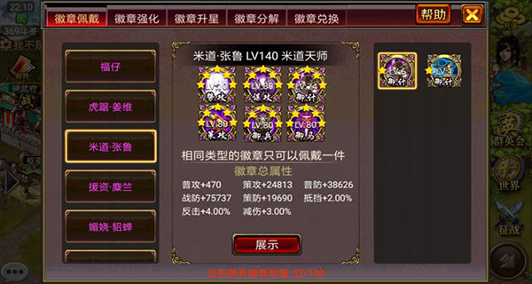 采药中大家反映的问题,每次被坑一千寻宝令,现在已经优化成点选,徽章增加了星级显示,在徽章的上面显示有星级,以及等级显示,如图:
