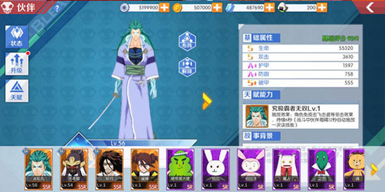 3、伙伴天赋,同名字同品质的伙伴可以升级伙伴天赋,初始伙伴的资质是随机的,品质越好的伙伴资质越高