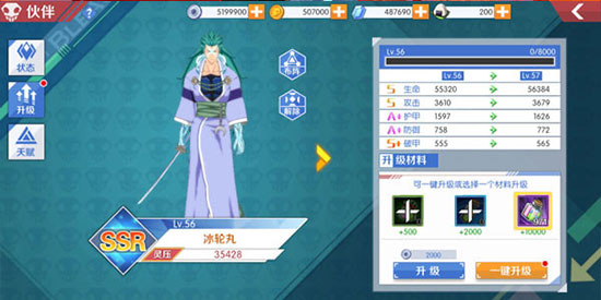 1、伙伴升级,使用金平糖来升级伙伴等级;解除伙伴相当于分解伙伴,可以返还一定的材料(金币或金平糖等)