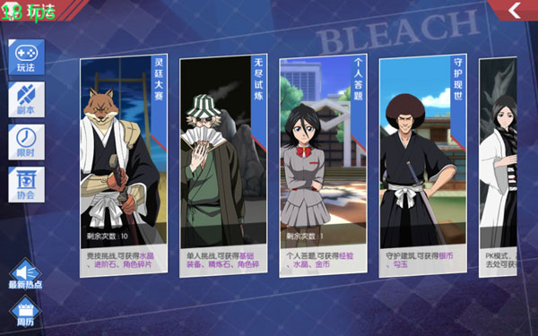个人答题:题目围绕动画和游戏内规则展开,可获得经验水晶、金币,每日1次;