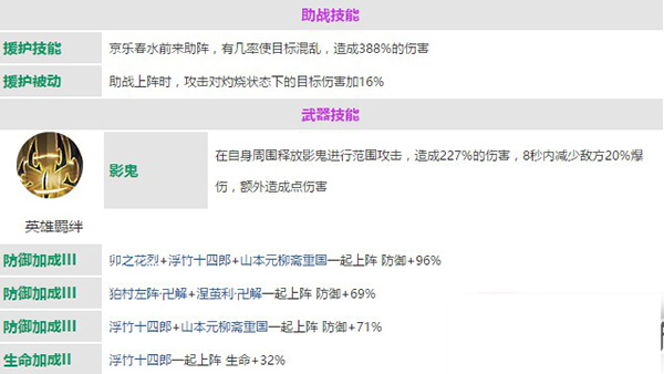 1、一阶,助战上阵时,攻击对灼烧状态下的目标伤害加16%