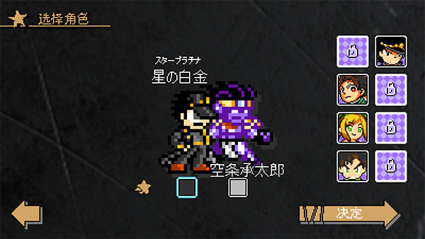 jojox洛克人最新版是由b站up主自制的一款动作冒险类手游,其中采用了细腻可爱的像素Q版画风设计,虽然画面算不上精致,但能给玩家带来清新脱俗的冒险体验感。同时游戏当中融入了很多有关于jojo的奇妙冒险的元素、以及鬼灭之刃的元素在内,像托比欧、雷克斯诺、炭治郎等等角色在这里都能体验到,带给玩家最畅爽的冒险体验感。