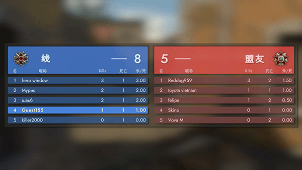 6、最后在规定时间内去击杀更多敌人吧,游戏上方会显示比分,比分高的一方获得游戏的胜利