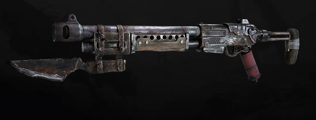 也叫老喷子,行走废士的人们最喜爱的防身武器之一,造价低廉威力巨大,经过改良在枪口下方加装了金属刀刃,还可在关键时刻作为刺刀进行搏杀,也可用于切菜剁肉实乃举多得是废士上干架越货居家旅行必备良品