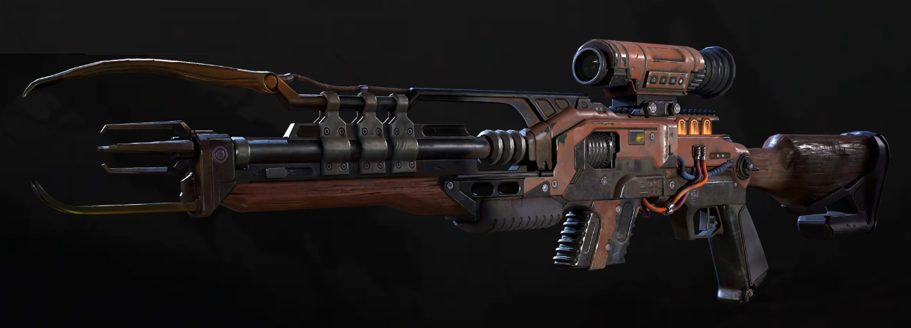 个传奇猎人使用过的武器这把半自动狙击步枪专门装配了电子增压装置让枪口初速极高电子增压带来的极大动能使子弹击中目标瞬间会造成巨大的撕裂伤害