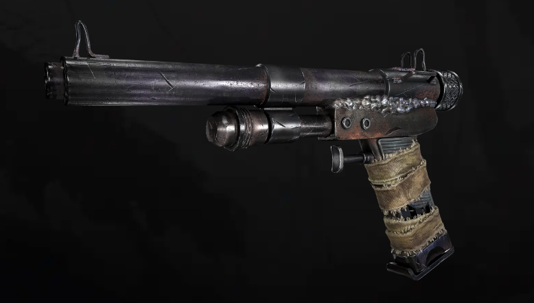 用螺纹钢管焊接拼造的简易士制手枪,威力大,发射时枪口产生的巨大噪音,因制造工艺简陋导致经常走火,号称废土走火王,不过也从来不卡壳
