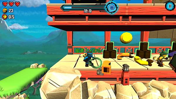 游戏过程中玩家的角色通过偷袭、隐身、躲避陷阱等等手段来增加隐身能量值,能量条满了之后玩家就可以进行奖励关卡,可以获取螺钉奖励。