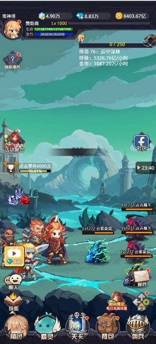 随机事件随机出现!只要轻轻一点事件即可提高战力、削弱魔物攻击、掉落大量金币和钻石!你更可以打开隐藏的各种玩法,体验属于你的神秘的快乐!