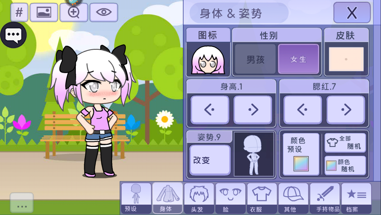 3、调整头发、眼睛、项目以适合您的角色,所有角色都能随意创造。