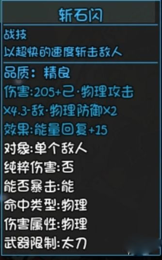 一、一闪最容易获得的太刀技能之一,以超快的速度攻击敌人,是太刀的入门技能,冒险者营地购买。