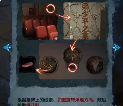 10、根据墓碑上面的线索,在图示位置旋转浮雕机关,打开获得绣花鞋。