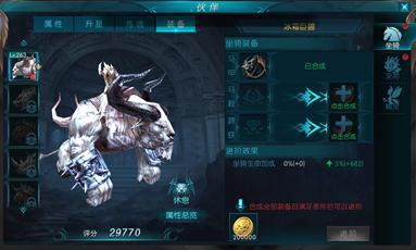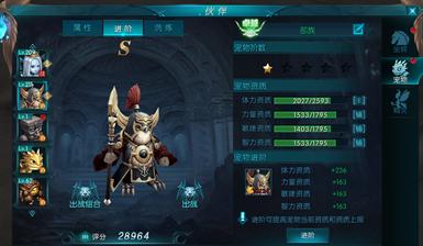 玩家可以在该界面查看进阶属性或者对宠物进行进阶操作。进阶消耗该宠物的碎片,星级越大消耗的碎片也就越多,宠物升星也是没有失败几率的。每个宠物可以升到五阶,进阶可以提升宠物资质或者资质上限。