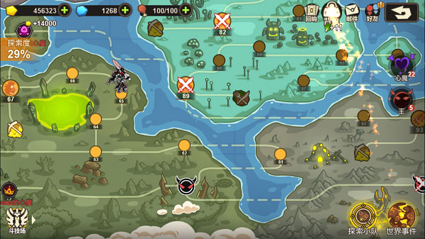 1、技能:怪物品质从绿、蓝、紫、橙会分别拥有1、2、3、4个技能,技能升级需要吞噬其他的怪物。