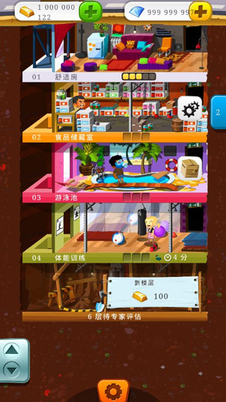 1、140层等你建造。你能到达哪一层?2、六种地下层:掩体层、安全层、水和食物供应层、科学层、作坊层及休闲层。