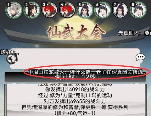 值得注意的是,除了修仙本身的各种奇遇发展外,《混搭修仙》的乐趣还来自于竞技。因为是8个人一局开始的,谁能活到最后谁就能成为第一人。这本就是修仙界的铁律,活下来的才会是最强的。所以对应也就出现了“稳重选择”(蹲到最后1秒选择,没准对方就遭遇了意外)、“属性针对”(关注修仙日报,避开对方最强的能力)等打法。