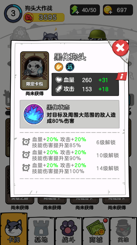 5、正如所见,该游戏是利用卡牌的方式去排兵布阵的,玩家可以收集很多类型的狗子,