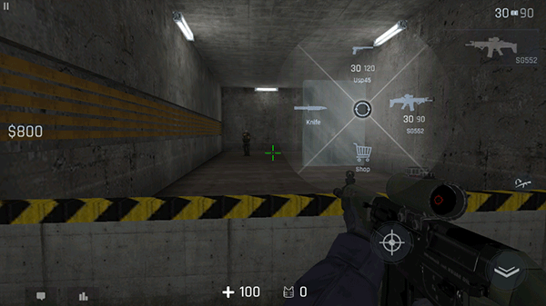 1、和其他cs版本一样,长按枪械可以选择各种类型的武器