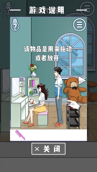 2、拿到柜子笔筒里面的502胶水涂到女生旁边的红色按键,接着拉开笔筒得到钥匙,打开锁住的柜子,得到芥末,用芥末替换男生旁边的奶油,最后点击“PLAY”。