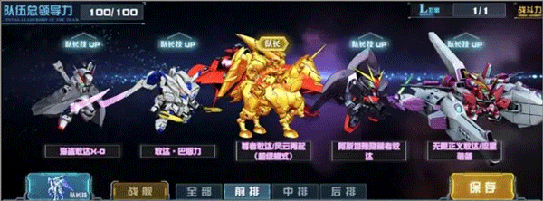 考虑到神敢达/明镜止水的获取难度较高,因此该队伍选择上阵典藏机体异端敢达金色机天照,不过需要注意的是,尊者敢达/风云再起(超级模式)与异端敢达金色机天照都能添加“无畏先锋”的Buff,会有重叠的可能性。