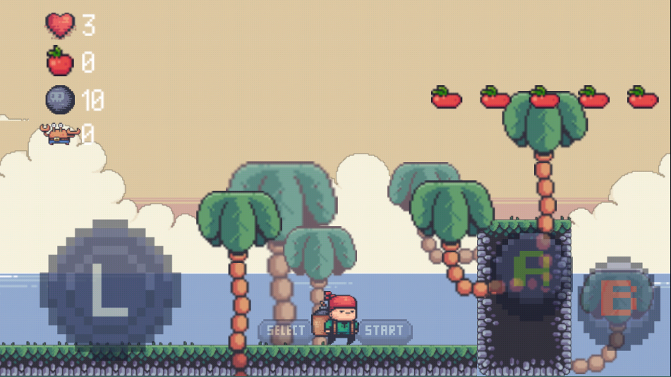 4、注意棕榈树随机掉落的果实炸弹和跳跃高度,按住跳跃键角色会跳得更高。