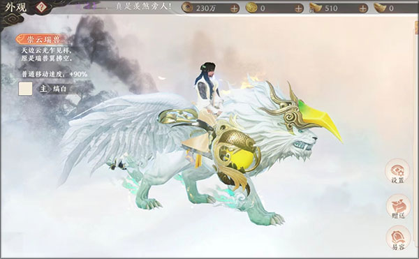 上面这两种都不需要额外购买,只要完成基础氪金项目就能直接拿到手,后面这些就需要大家消耗元宝额外购入,是否入手这些就要看大家手中元宝数量,如果非常充足可以直接拿下。尤其是飞熊入梦最值得推荐,能够骑乘白色巨熊,除了速度高之外,还能获得浮水移动速度加成,在水上变得极其灵活,是所有坐骑中唯一具有该特点的类型。
