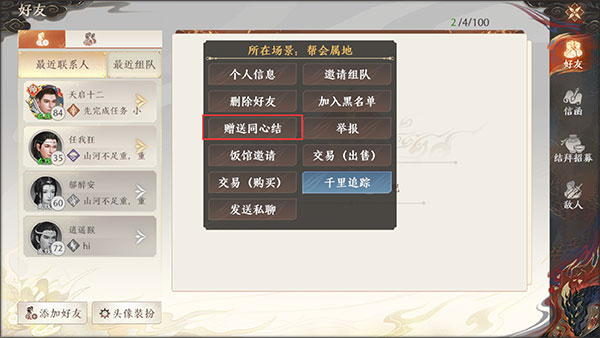 通过赠送同心结可以快速增加好感度,同心结可以在商城购买获得。
