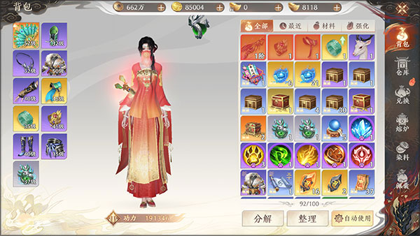 闯荡江湖,一身强大的装备必不可少。少侠可以对自己的装备进行宝石镶嵌、强化、刻铭、精通等操作。