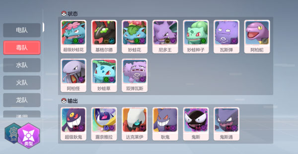 毒队并不是以一个高爆发见长的队伍,虽然也有超级耿鬼这样可以快速造成大量伤害的精灵,但总体而言,毒队更加依靠其附加在对方身上的中毒状态的伤害来进行压制,毒队续航不错,伤害虽然不是爆发型,但是是持续型伤害,遇到高爆发的队伍会比较难受,且毒队的核心组成里,两张SP几乎必不可少,这对于想要组成毒队的玩家来说并不太友好。