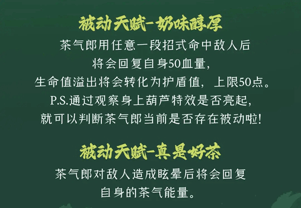 P.S.通过观察身上葫芦特效是否亮起,就可以判断茶气郎当前是否存在被动啦!