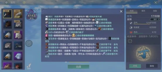 特别值得一提的是蛟龙这个坐骑,它不仅外形霸气,还能在海陆空三栖作战,输出能力超强。虽然培养起来有点费时费力,但感觉 totally worth it,特别是进化成万年蛟龙后,战斗力直接拉满!