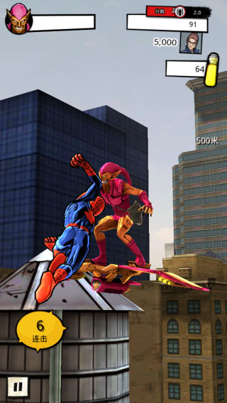 2、独特的游戏玩法,让你尽享不同的跑酷体验!和不同空间的超级坏蛋激战,尽情飞荡,自由爬墙,完成高空跳跃!
