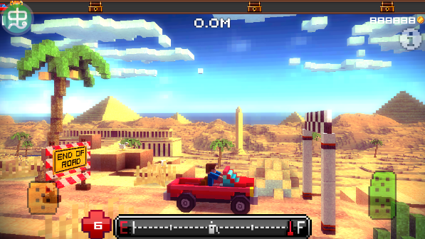 起初玩家只能选择原配的红色小皮卡展开游戏,玩法上有点《Stick Stunt Biker》的味道。点击左右下角的踏板分别可以让车子后退或前进,此外画面下方显示的是油量,上方则代表车子驶出的距离。有趣的是该作还加入了车损设定,只要行驶的过程中受到激烈碰撞都会导致生命值的损失,在数值不断降低的过程中,小车还会冒出黑烟表示已经达到某种程度的损坏,迫使玩家不得不丢掉“求快”的驾驶习惯,小心翼翼地克服各种颠簸地形。