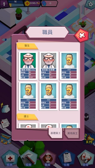 1、建造你将从无到有建造一座医院,一步一步添加设施和科室,让尽可能多的患者前来就诊