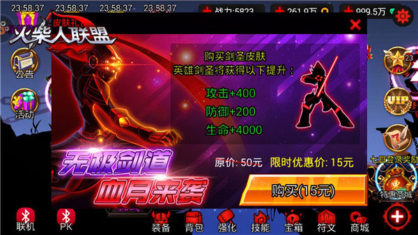 火柴人联盟皮肤系统今日正式上线,并同步推出剑圣皮肤。一生追求剑道极致的剑圣,不仅擅长近战攻击,还能回血。此次皮肤上线后,玩家的剑圣将会焕然一新,无论是外观还是属性都将得到质的改变。只要玩家为剑圣换上皮肤,他就能瞬间获得400攻击、200防御、4000生命的加成。同时,剑圣也将褪去绿光,换上能令人联想起死亡和狂暴的恐怖红光。而在实际战斗中,剑圣的红光将更为耀眼,令人胆寒。