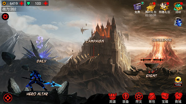 1、【无限制即时格斗】《火柴人联盟》的格斗采用了类似于街机格斗游戏的操作方式。玩家可利用左侧虚拟方向键,控制英雄前进后退,并配合右侧攻击组合按钮,完成普通攻击和4种技能地释放。值得一提的是《火柴人联盟》支持双英雄同时战斗。战斗中,玩家可随意切换操控二者相互配合,体验不同于以往的格斗游戏新体验。