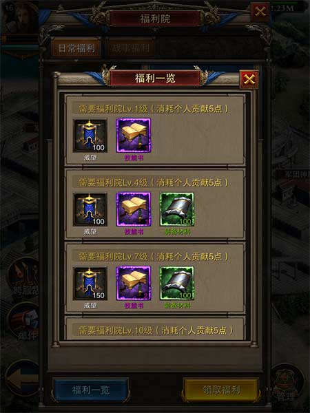 军团成员每日可再次领取一份日常福利,军团在争霸中获得的奖品军团长可以在此分配给成员