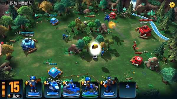 “小心长官!前方丛林可能有埋伏的敌人!”在游戏中,你将前往丛林、冰湖等不同的作战地点,观察战场地形、部署你的玩具兵团、巧妙利用兵种属性克制来战胜你的敌人!