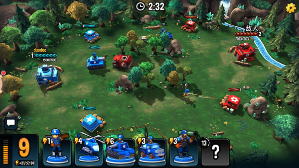 嘿,指挥官,看到对面两个倒霉的家伙了嘛?带上你的好友一起击退他们!游戏中,你可以与好友组队进行2V2协同作战,体验更多兵种的搭配,更具策略的战斗。
