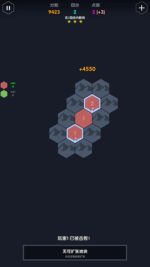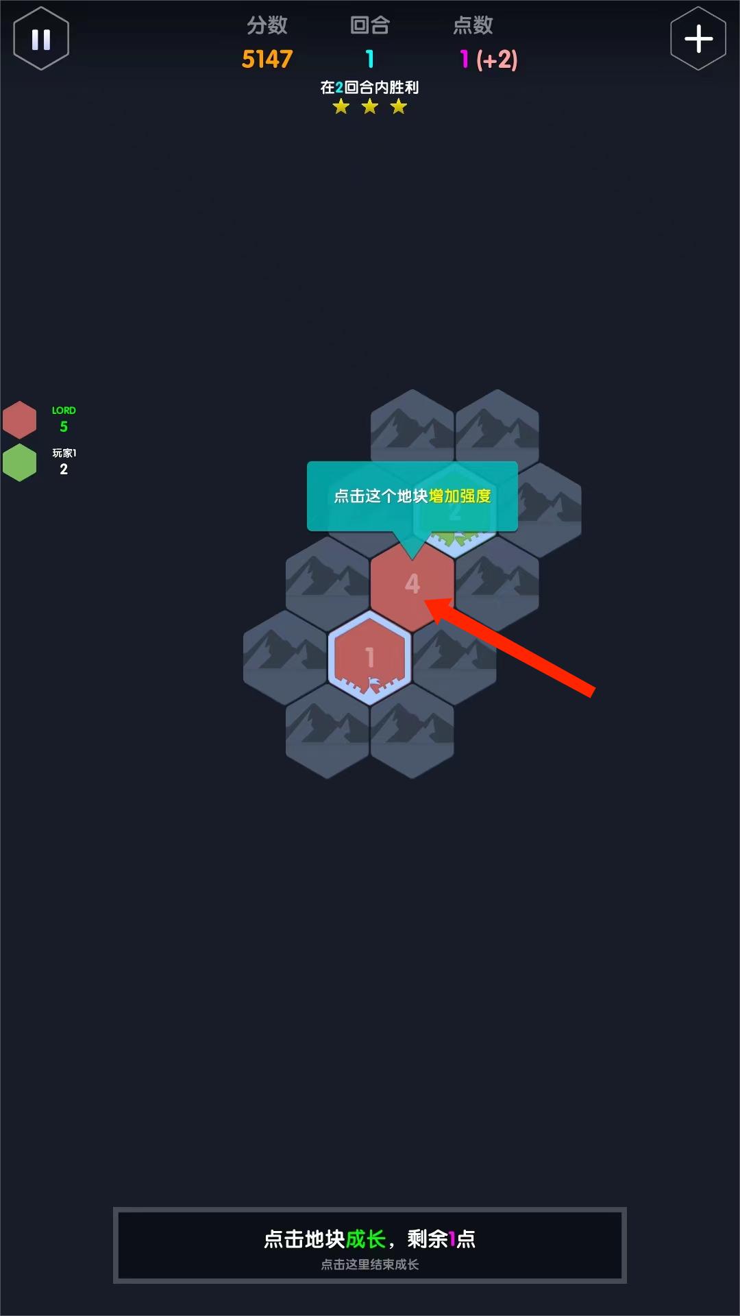 4、接着点击相邻的地块,可看到自己的模块已分散出去并占领了新地块,点击新地块可以增加强度,