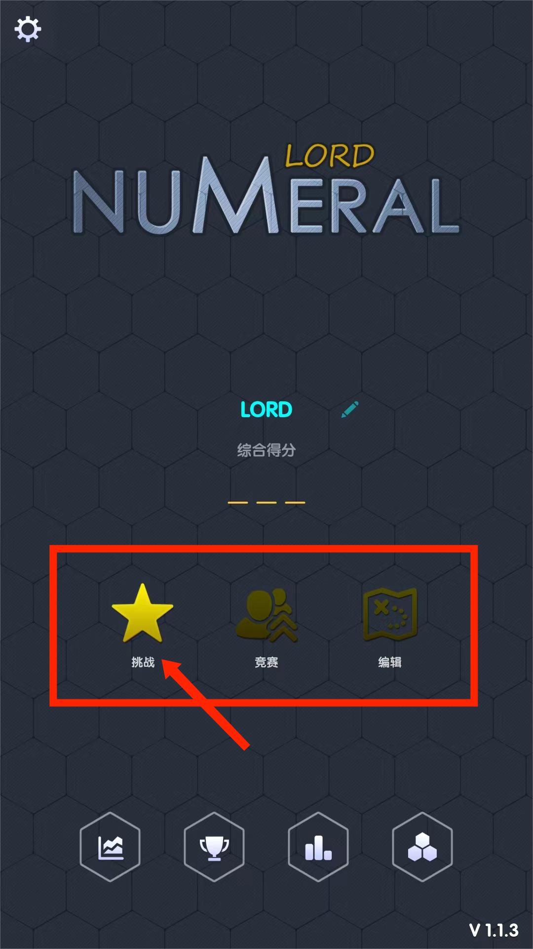 1、打开数字领主手游,进入游戏主界面,包括挑战、竞赛和编辑等玩法,这里以【挑战】为例,