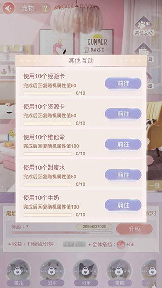 基本上照顾宠物还是不需要花费太大心思的,时不时去看看它需不需要投喂就好了,经验一满就点升级。有钱的玩家当然可以购买各种道具跟宠物进行互动,这样宠物成长得更快。但白飘党们也不要气馁,攒点钱买食丸就可以了,小可爱照样可以健康长大。
