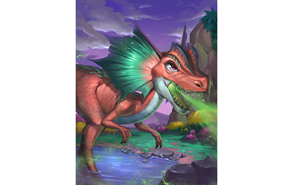 中小型肉食性恐龙,由于头上有两个脊而得名。游戏中的双脊龙属于远程单位,可远距离喷射毒液。毒液具有的腐蚀性对木质拒马可以造成3倍的加成伤害。所以使用双脊龙远程清除敌方的拒马会非常高效。但极其脆弱的生命值,可不要被敌方较大攻击范围的投石车一下砸死。