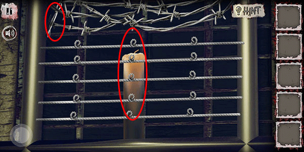 3、靠近窗台后我们可以发现蜡烛以及一根钢丝,我们将所有钢丝全部往上拉并从下方抽出蜡烛,然后点击旁边获取钢丝
