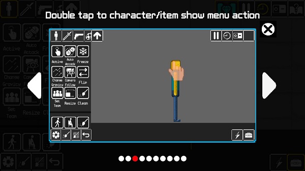 1、进入游戏后,在沙盒创造的左上方有关于人物、武器的下拉菜单,选择人物,点击地图场景即可添加。