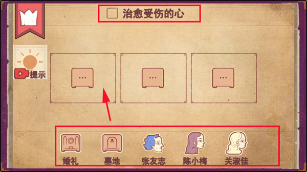 3、如果关卡的难度较大,我们可点击左方的提示获取一项标准答案,皆是我们还原答案剧情即可通过,具体如下图所示;