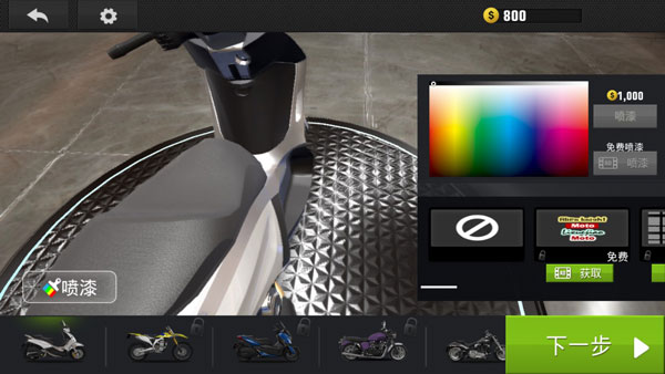 强化:顾名思义也比较简单,利用金币来加强摩托车的速度、加速和操控性。