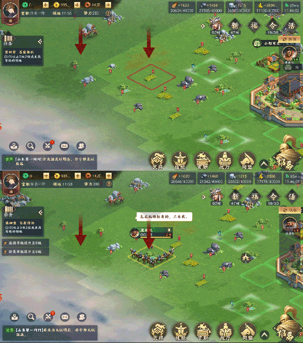 可是在《胡莱三国4》中,独创的范围铺路机制,可以让你快速完成铺路作业,直达战略要地!总结来说是酱紫的:攻占我方势力范围内最边缘的一处地块,攻占成功后,该地块被成功征用,可用来采集、可进行屯田或改造,并以该地块为中心,向四周辐射2地块距离都将成为我军的势力范围,我方部队可在其中任意穿行、驻军。攻占一个地块,还会获得该地块前后左右两倍距离的势力范围,这铺路能不快么!