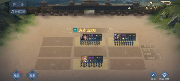 别嫌弃新手三大汉——王越,乐进和张燕,他们足以攻打低级土地,在主公拥有张昭或诸葛瑾后,便可以替换下张燕或乐进,一枪一骑一弓箭的阵容非常适合前期作战。